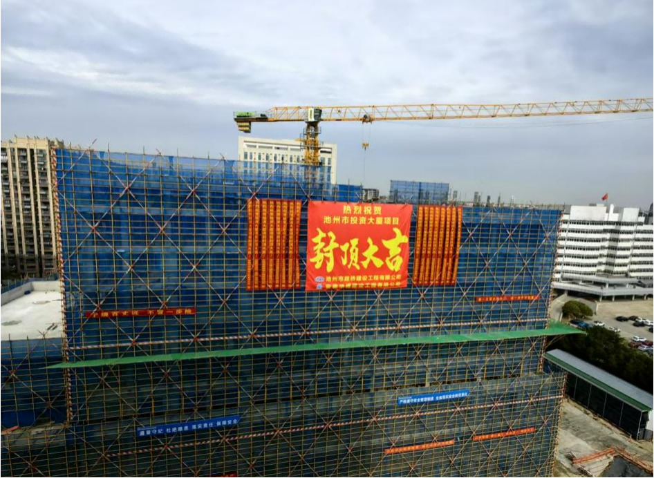 萬丈高樓平地起,一磚一瓦見匠心。從一片黃土到喜封金頂,歷經10個月的精雕細琢,集團所屬路橋公司自籌自建的池州市投資大廈項目迎來新節(jié)點——主體結構順利封頂,現已全面進入砌筑工程及裝飾裝修施工階段。