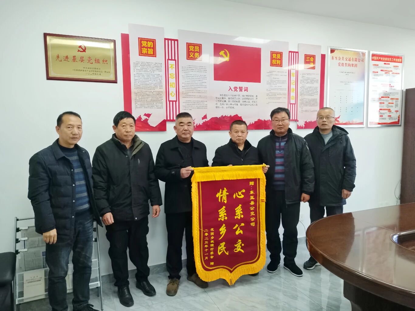 2025年11月25日上午,安徽省池州市東至縣花園鄉(xiāng)桃源村委會支書一行專程來到東至公交公司,送上了一面印有“心系公交 情系鄉(xiāng)民”的錦旗,以此表達(dá)對公司多年來堅(jiān)持運(yùn)營縣城至桃源村公交線路的誠摯謝意。