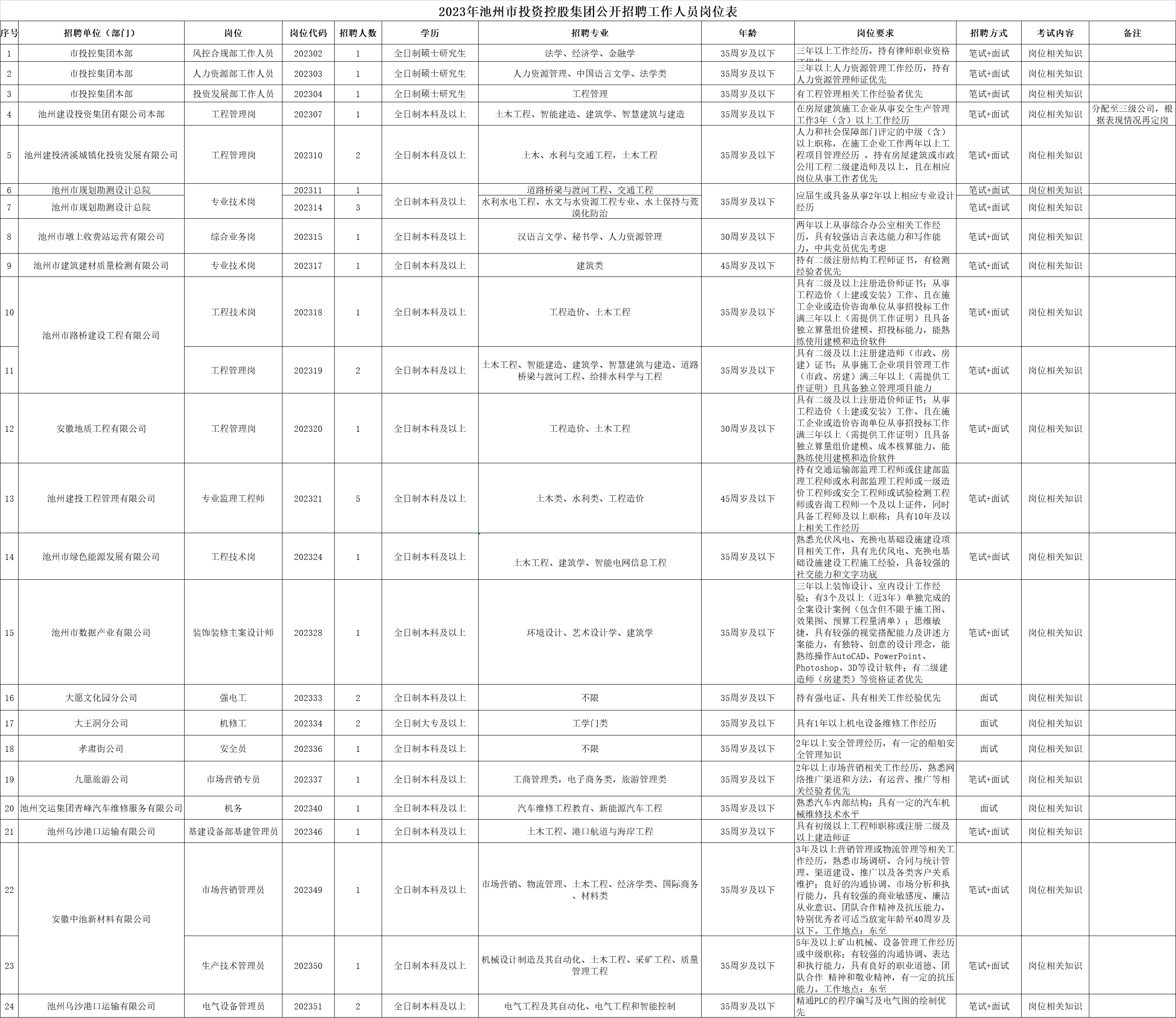 2023年池州市投資控股集團(tuán)公開招聘報(bào)名工作即將結(jié)束,截止2023年9月15日20:00,共有24個(gè)職位35個(gè)計(jì)劃招聘數(shù)暫時(shí)無人報(bào)考或達(dá)不到開考比例,如2023年9月17日24:00報(bào)名時(shí)間截止前仍達(dá)不到開考比例,將核減或取消該崗位招聘計(jì)劃。有意向報(bào)名人員請(qǐng)登陸池州人事考試網(wǎng)(http://rskszx.czsrsj.chizhou.gov.cn)報(bào)名,審核未通過人員可改報(bào)其他符合條件崗位。