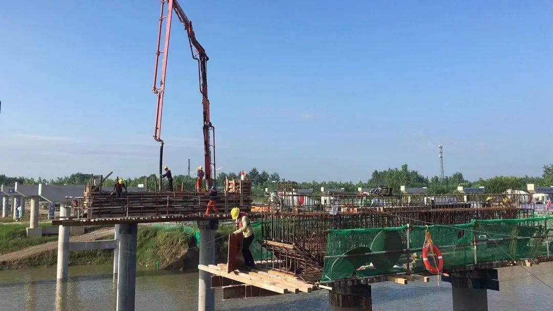 前期工作已完成,PHC管樁及鋼管樁已施工完成,引橋灌注樁施工124根,完成總量的97%,下橫梁施工完成,預(yù)制梁安裝完成84%,預(yù)制板安裝完成70%,上橫梁施工完成61%,現(xiàn)澆面層完成7%,水下拋石完成41%。