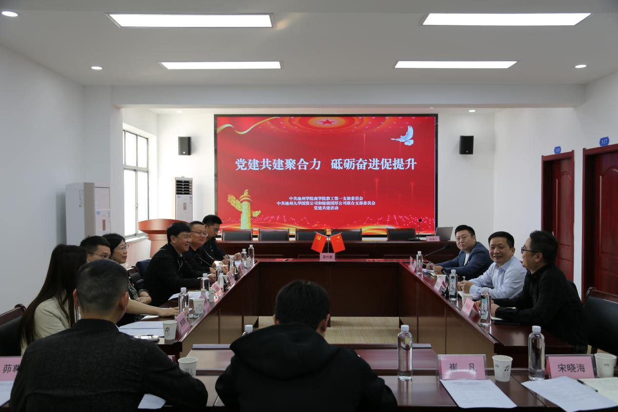 為深入貫徹落實習(xí)近平新時代中國特色社會主義思想和黨的二十大精神,貫徹落實新時代黨的建設(shè)總要求,近日,池州新興產(chǎn)業(yè)投資集團(tuán)九華國資公司和綠能國厚公司聯(lián)合黨支部與池州學(xué)院商學(xué)院教工第一黨支部開展了以“黨建共建聚合力 砥礪奮進(jìn)促提升”為主題的“1+1”基層黨支部結(jié)對共建活動。此次活動旨在構(gòu)建“資源共享、合作共贏、黨建引領(lǐng)、黨建創(chuàng)新”的校企黨建共建新局面。