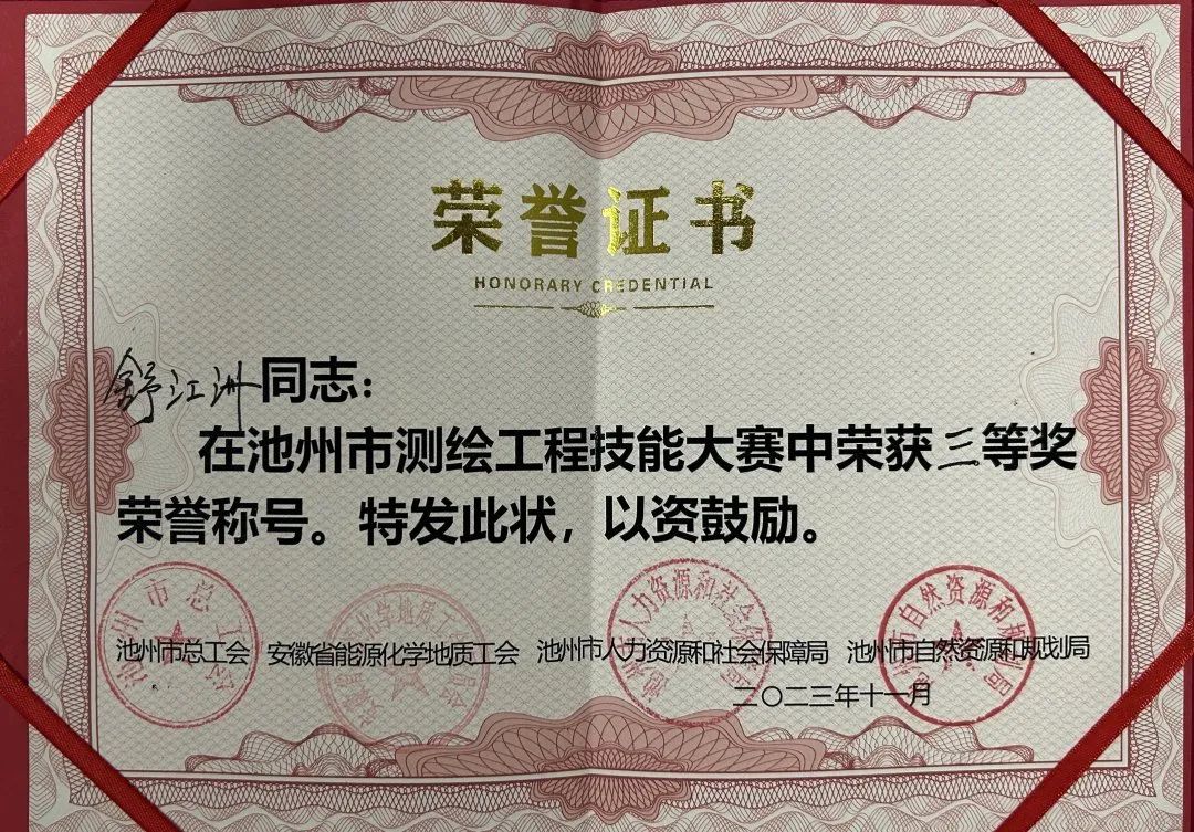 日前,池州市首屆測繪工程技能大賽圓滿落幕,全市22家測繪單位的15支隊伍以及20余名個人賽選手參加。最終,集團所屬池州市規(guī)劃勘測設計總院有限公司在此次技能大賽獲得團體總成績第一、個人成績第一的佳績。