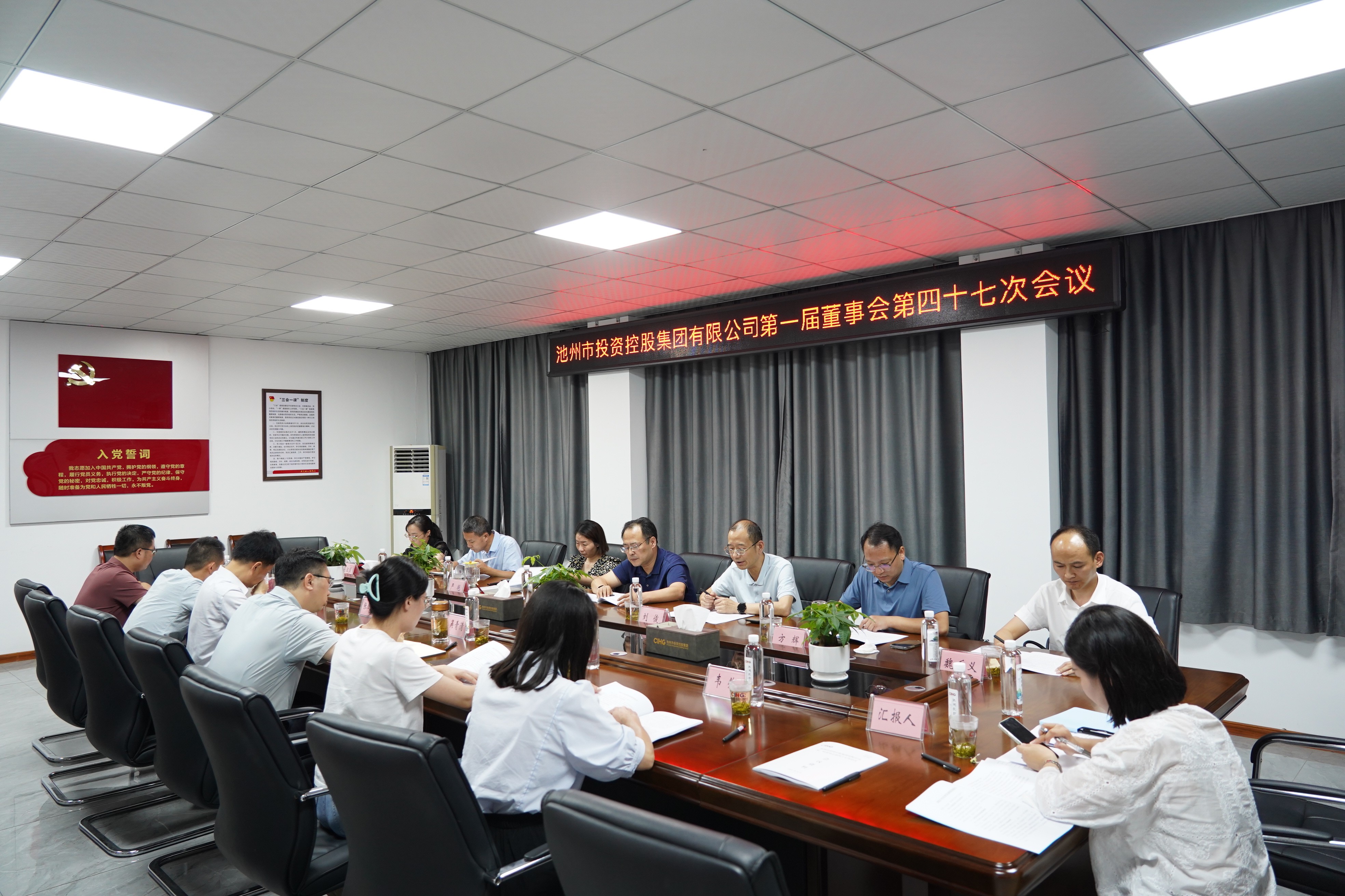 近日,池州市投資控股集團有限公司以現(xiàn)場會議形式召開了第一屆董事會第四十七次會議。會議由集團黨委書記、董事長汪偉主持,董事會成員出席會議,集團紀委書記、監(jiān)事會成員列席會議。